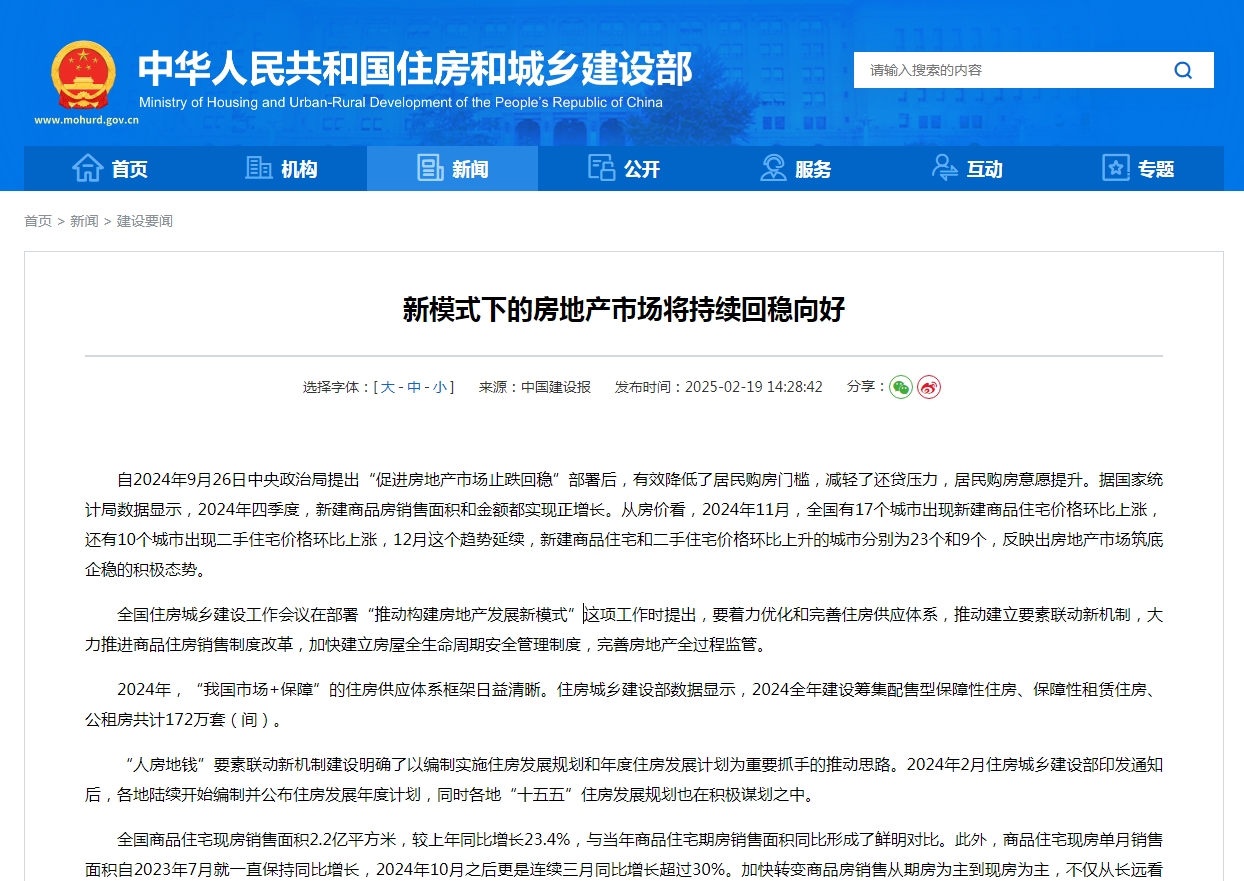 自2024年9月26日中央政治局提出“促进房地产市场止跌回稳”部署后,有效降低了居民购房门槛,减轻了还贷压力,居民购房意愿提升。据国家统计局数据显示,2024年四季度,新建商品房销售面积和金额都实现正增长。从房价看,2024年11月,全国有17个城市出现新建商品住宅价格环比上涨,还有10个城市出现二手住宅价格环比上涨,12月这个趋势延续,新建商品住宅和二手住宅价格环比上…